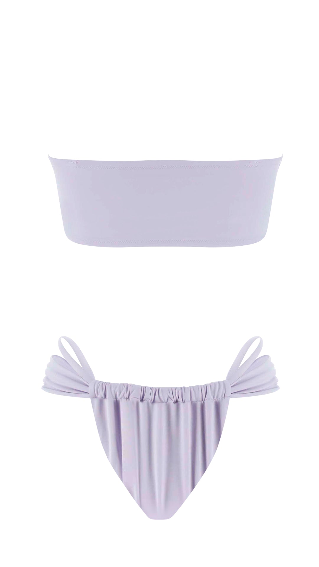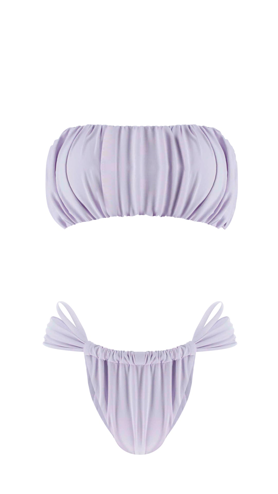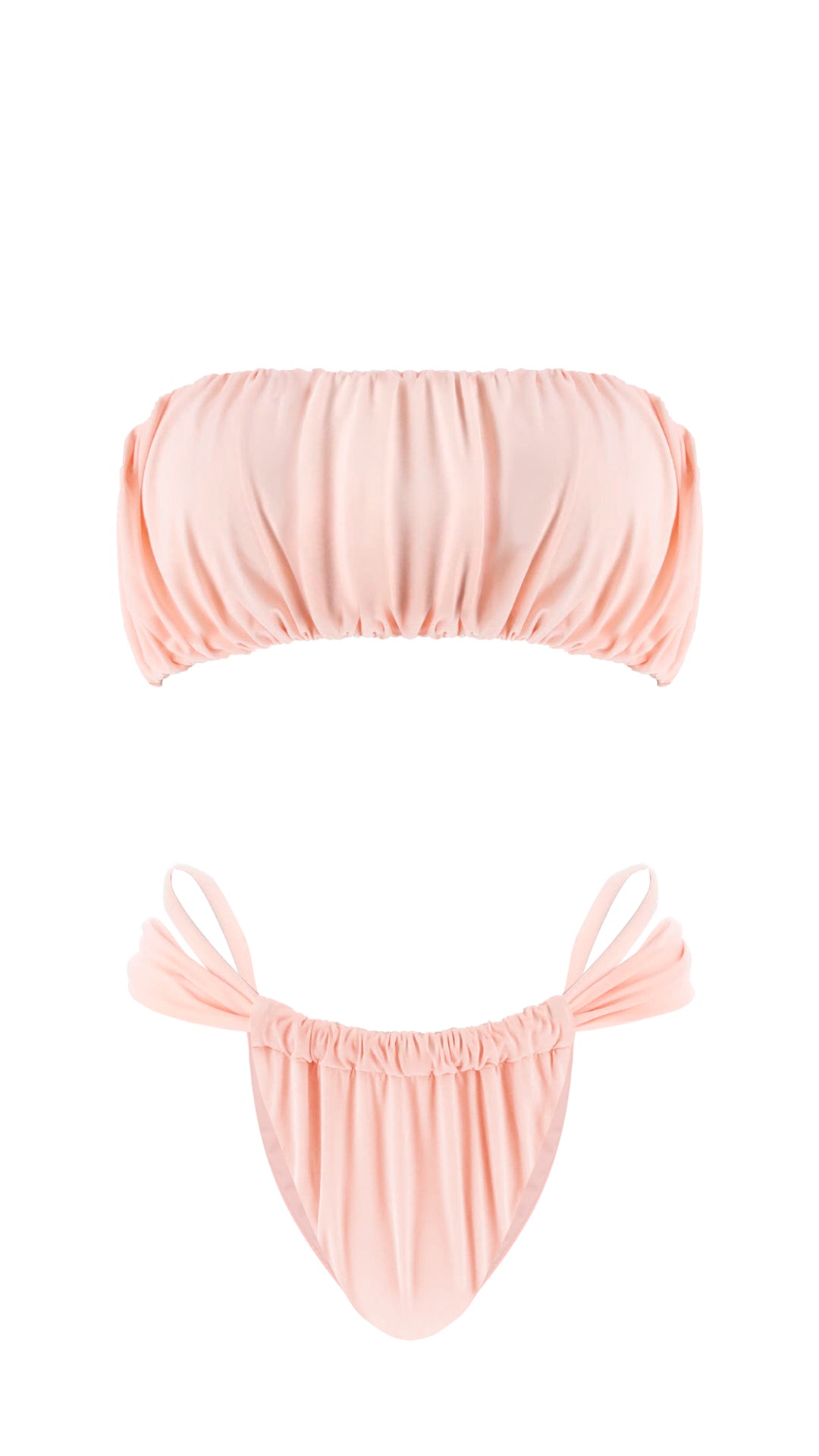 伸縮性のあるストラップが特徴のGivernyの水着は、これまでにないデザインとなっています。肩のストラップは取り外し可能で、2WAY仕様として着用が可能。全体に施されたギャザーが女性らしさを引き立てるデザインです。