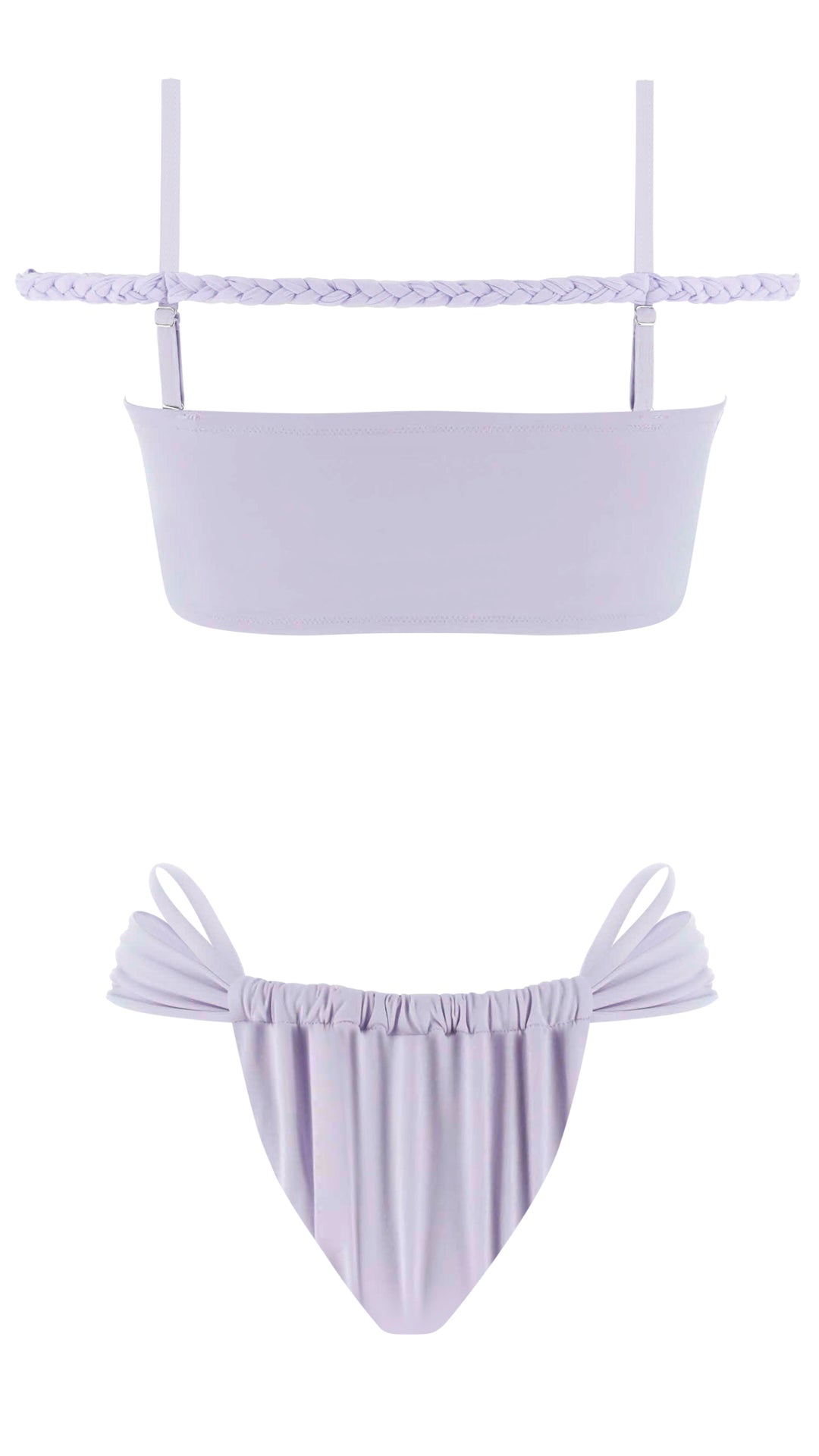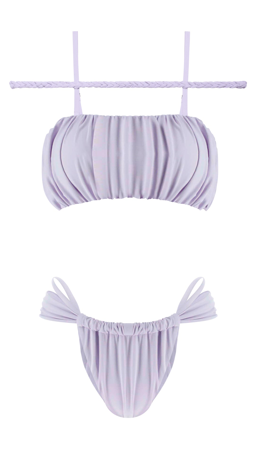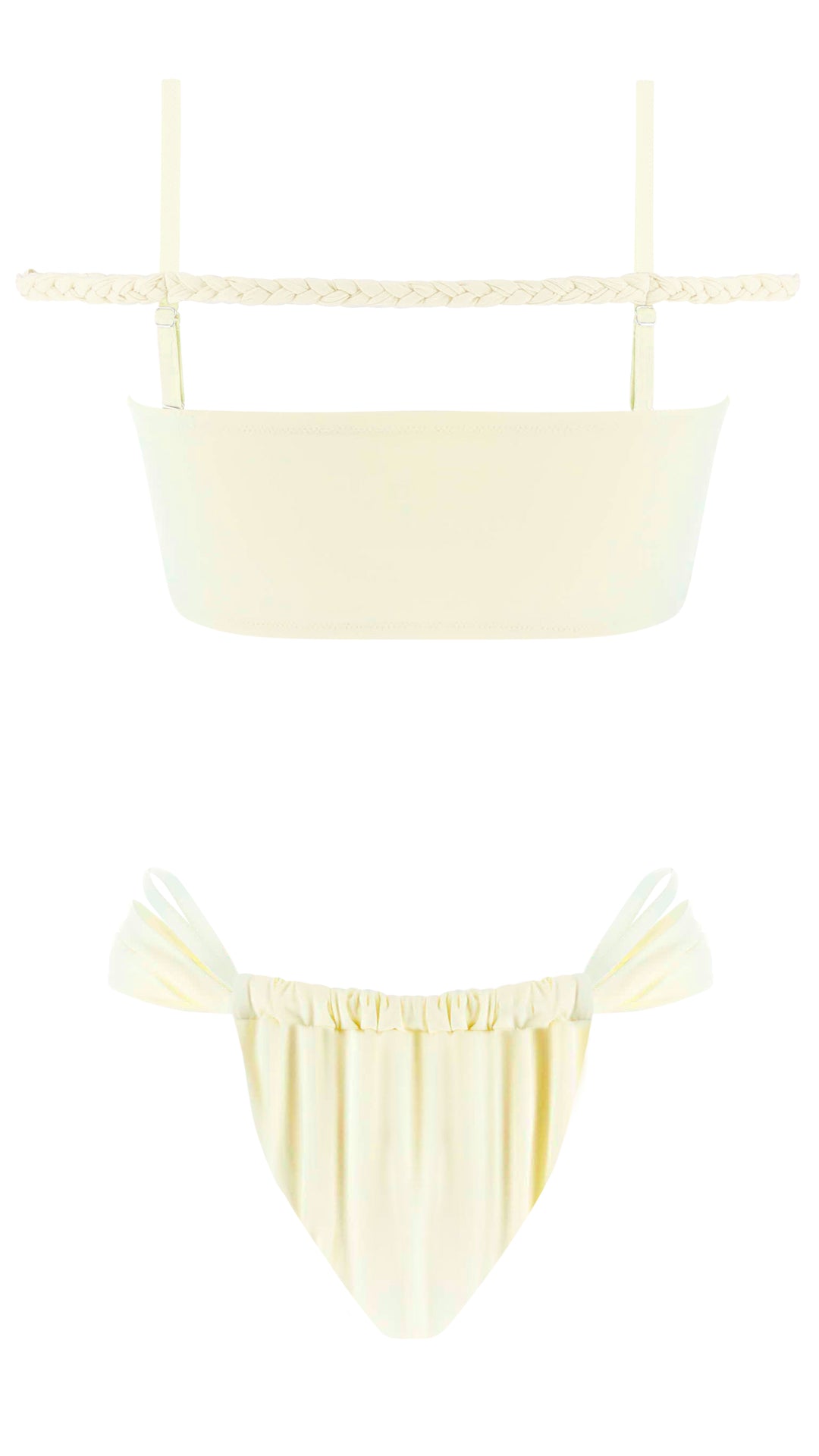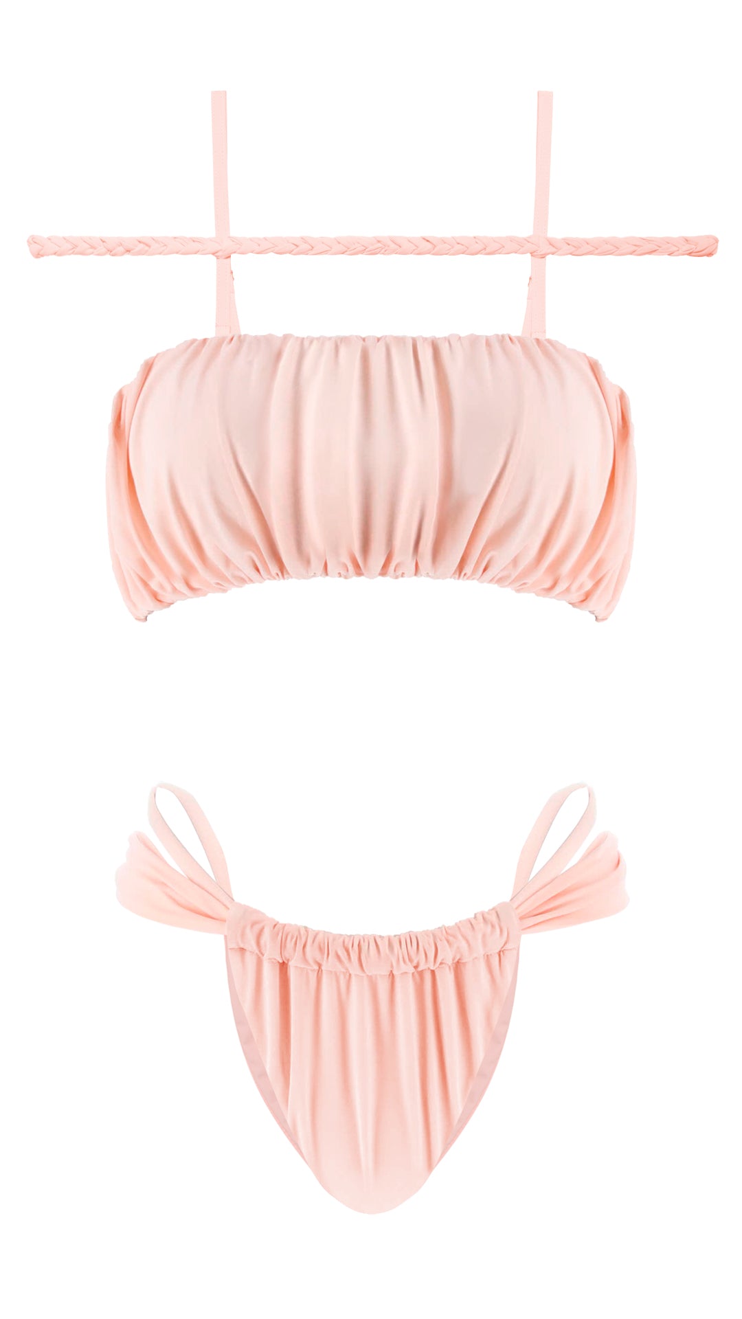 伸縮性のあるストラップが特徴のGivernyの水着は、これまでにないデザインとなっています。肩のストラップは取り外し可能で、2WAY仕様として着用が可能。全体に施されたギャザーが女性らしさを引き立てるデザインです。